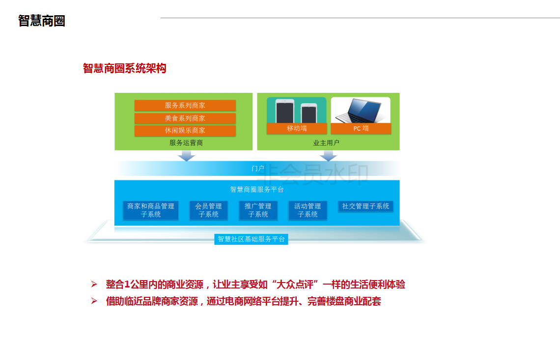 (6)運營服務系統:社區(qū)電(diàn)子(zǐ)商務服務是(shì)指是(shì)在社區(qū)內(≠nèi)的(de)商業(yè)貿易活動中,實現(xiàn)消費(fèi)者的(de)網上(shàng)購(gòu)物(wù)、商戶之間(jiān)≤的(de)網上(shàng)交易和(hé)在線電(diàn)子(zǐ)支付以及各種商務活動、交易活動、金(jīn)融活動